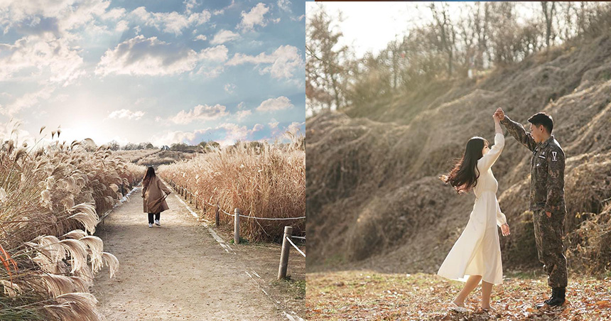 ▼第五站:「天空公園」(하늘공원)到了秋季時,天空公園就會出現一大片白茫茫的芒草,搭配藍天白雲的場景,讓人有種身在歐洲鄉村田野的錯覺。在這裡隨手一拍都能拍出韓劇中浪漫氣氛,一定要帶男朋友來這裡~~