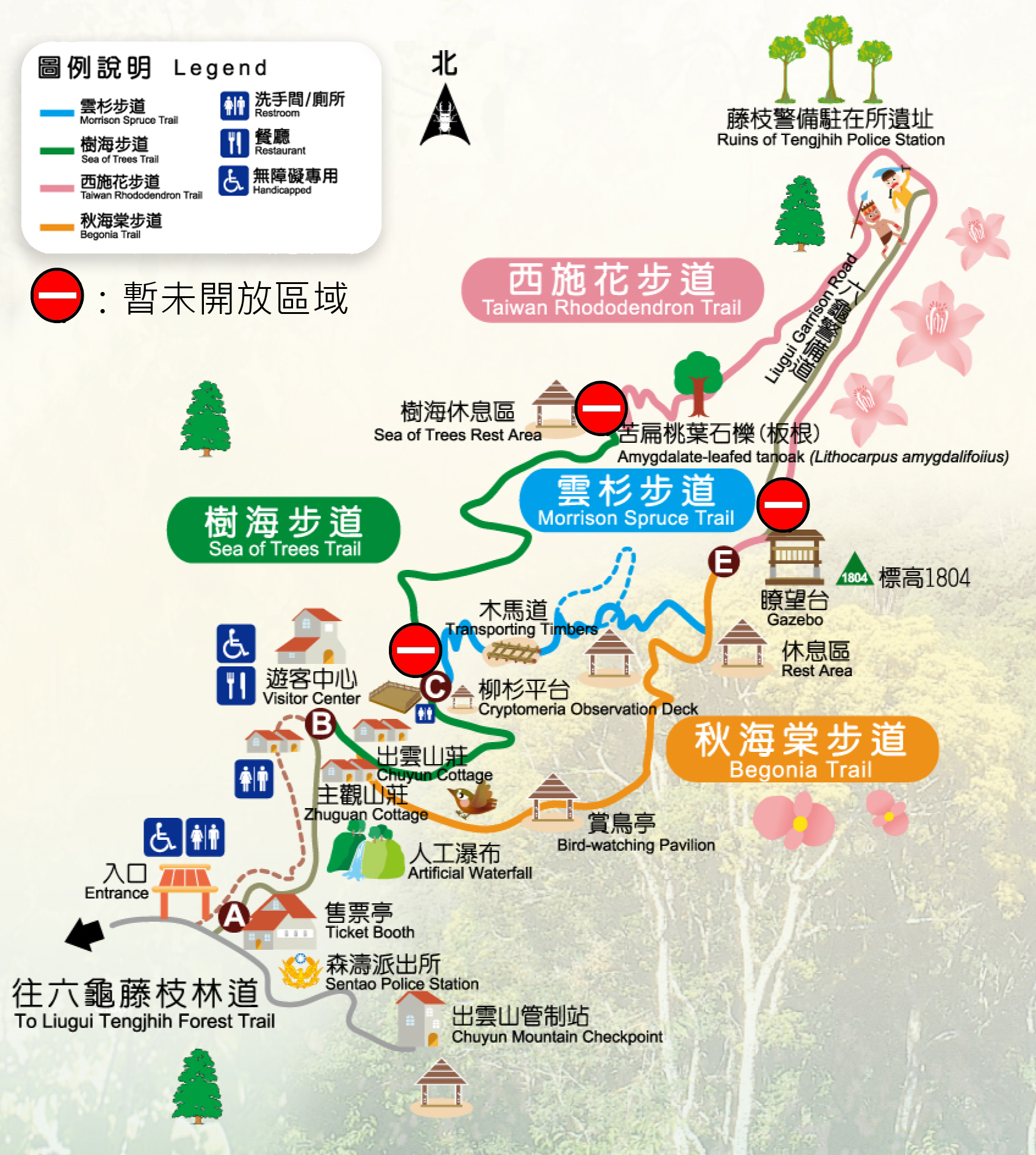 ▼此次試營運開放範圍有遊客中心、迎賓步道、秋海棠步道、雲杉步道、樹海步道等地,入園門票享半價優惠(新台幣60元)。