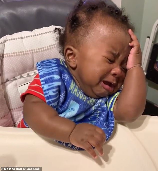 ▼盯著看了爸爸2秒後,寶寶終於忍不住了,扭過頭去扶額大哭。