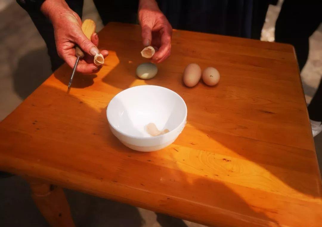 ▼李大姐將這顆「花生蛋」敲破後,發現裡面竟有兩層蛋殼。