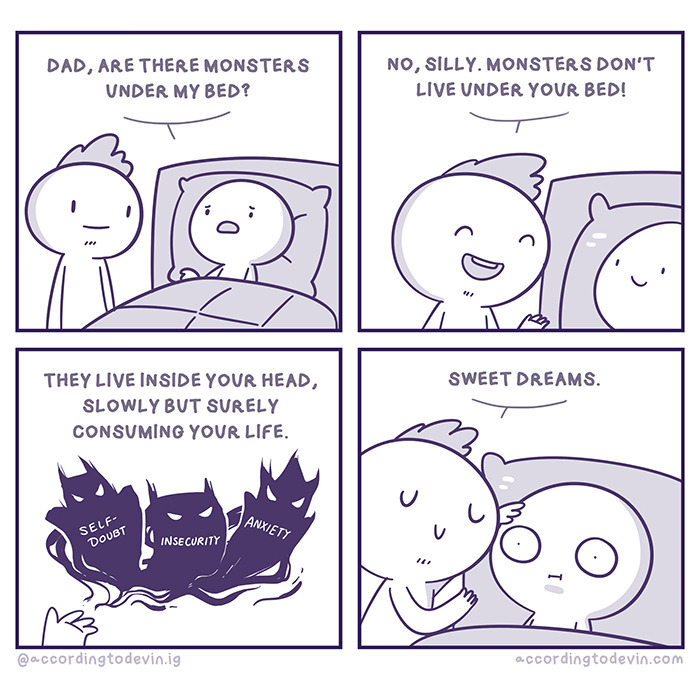 「牠們住在你的腦海里,緩慢卻不斷的侵蝕你的生命!」(自我懷疑、不安全感、焦慮)