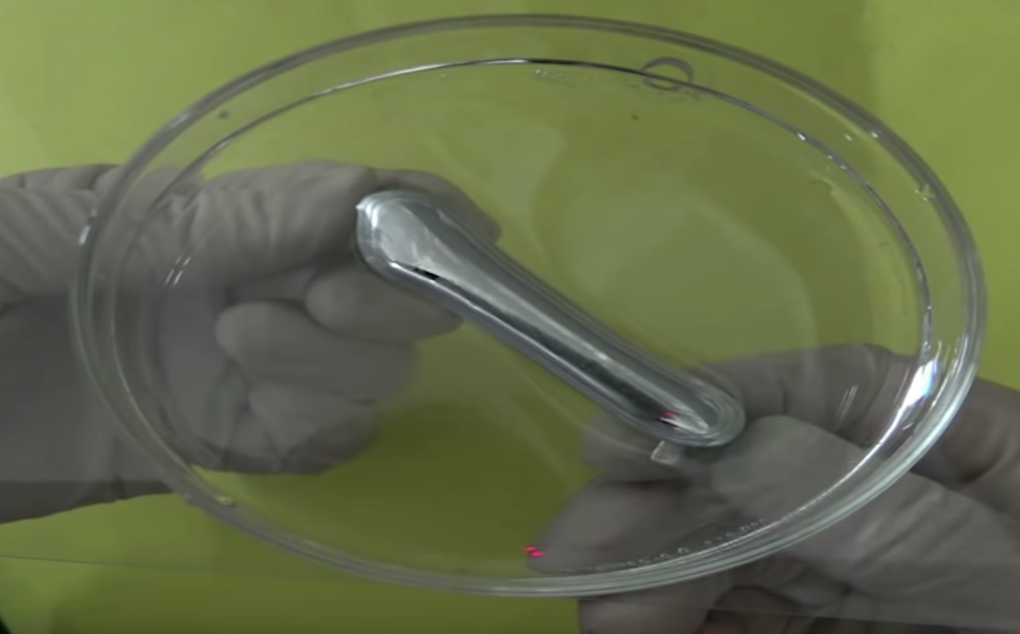 ▼研究人員表示,他們在鎵中加入鐵和鎳,以及一種浸入鹽酸的錫合金,成功大幅降低表面張力,讓材料可以拉伸至其靜置長度的四倍。