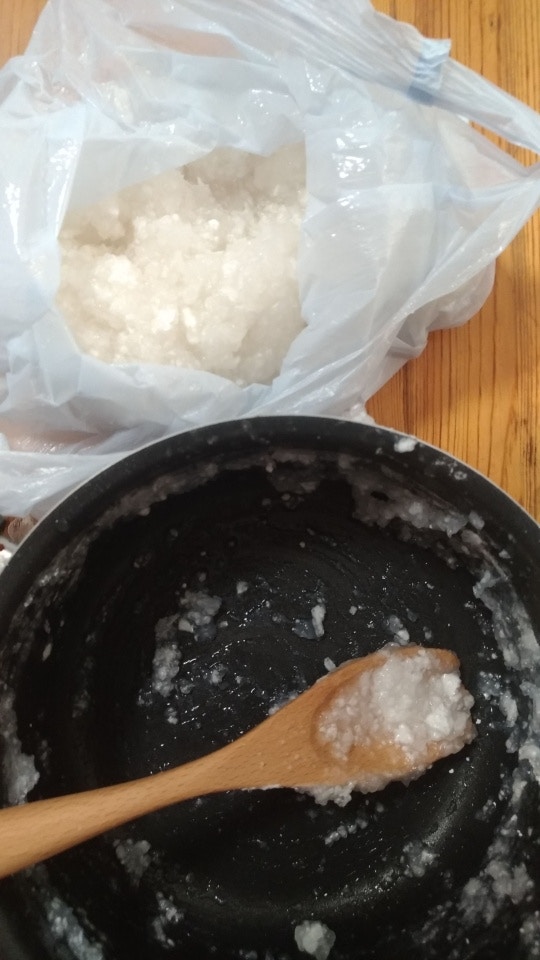 ▼挑戰失敗後,她又再接再厲做了一次給原PO吃…這一次做成了像白粥的模樣。