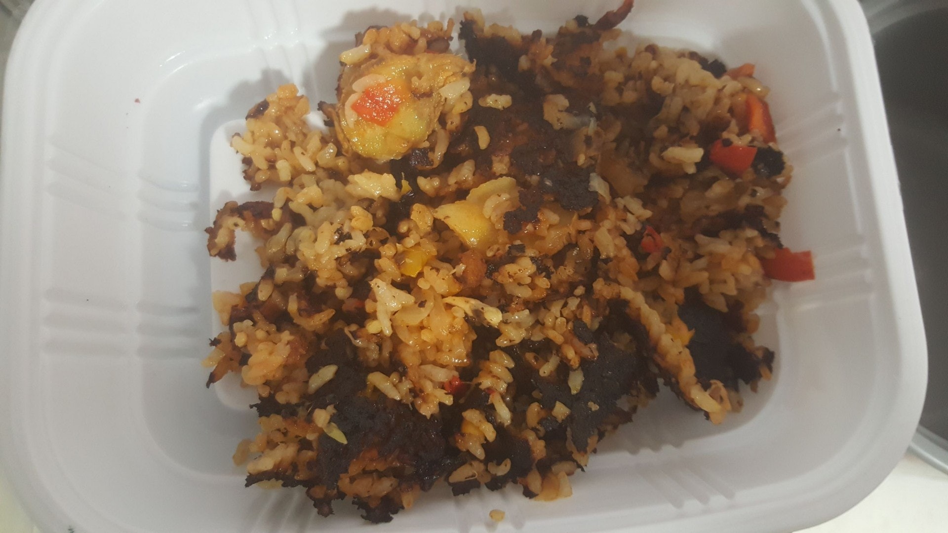 ▼甜品還算是可以接受的程度,但是接下來的正餐就讓大家都跟著臉歪了!下面這個「西班牙海鮮飯」名字聽起來很厲害,但是做出來…各種焦讓原PO苦喊:「焦到可以去異世界了」!