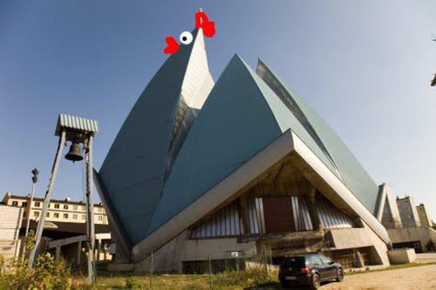 ▼是不是教堂都喜歡蓋成像雞一樣啊?🐔