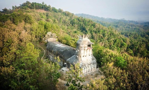▼不過再怎麼樣也比不上這棟「祖師級雞建築」在印尼爪哇島的日惹有一個戴皇冠的巨型雞建築,外觀破舊的模樣多了層神秘感啊!