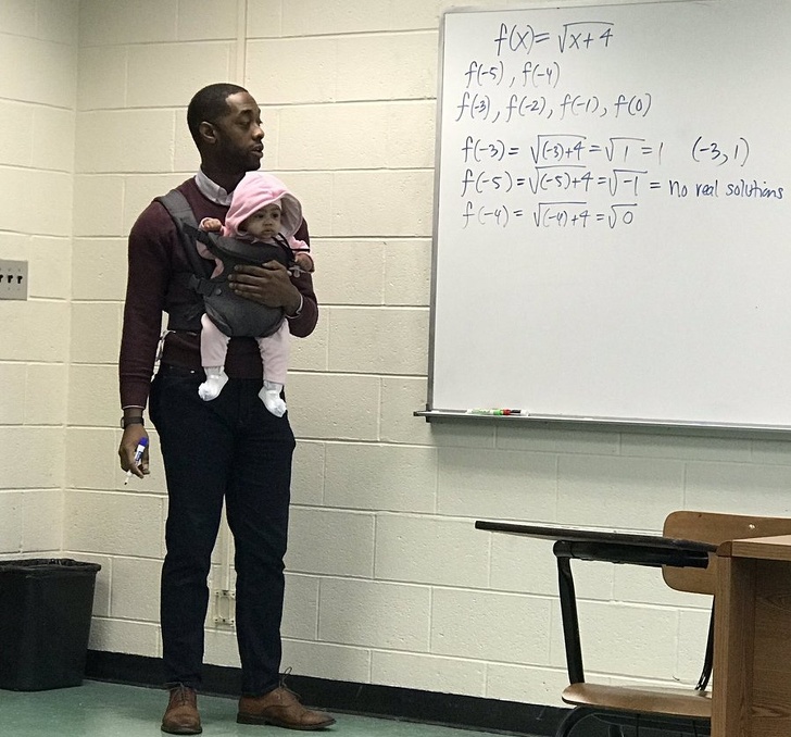 ▼有學生因為臨時找不到保姆,被迫帶著寶寶來上課,最後教授抱過了寶寶,對學生說:「她讓我來照顧,你好好抄筆記。」
