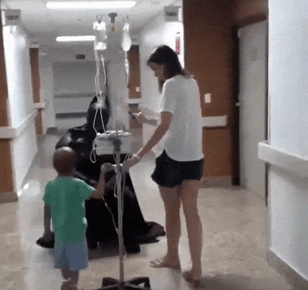 ▼醫生問這個小孩最大的心願是什麼,小孩回答想見到蝙蝠俠,於是醫生打扮成蝙蝠俠來讓他開心。