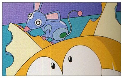 ▼1985年之前出生:黃色的「哆啦A夢」從鏡子中看到自己的耳朵被老鼠咬掉,大受打擊,又被刺激到,就變成了藍色;
