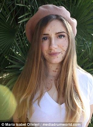 2019年04月06日一般來說,胎記不會影響身體健康,但如果長在很明顯的地方,那對愛美的人來說就是很大的打擊了。西班牙22歲女孩Maria Isabel Olivieri全身長滿胎記,連臉上也有不少。這些胎記不僅影響了她的生活,還讓她的父母產生了矛盾。