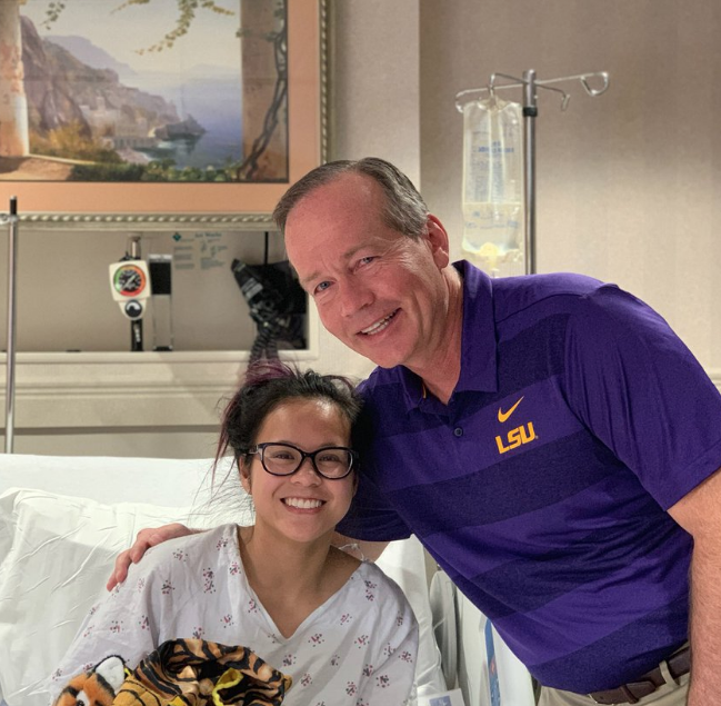 ▼路易斯安那州立大學校長過後也有探望Samantha,PO照片表示:「我相信她一定會很快克服這一切,並且繼續完成其他更好的事情」。