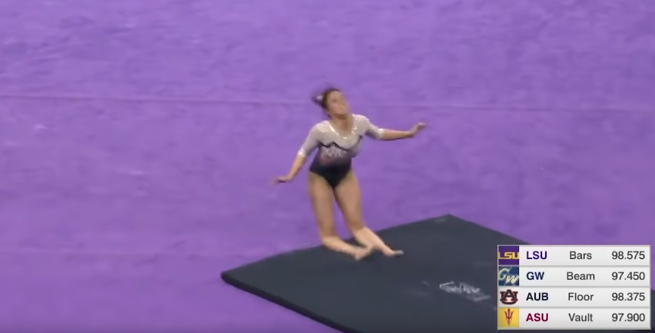 ▼當時的比賽是在路易斯安那州立大學舉行,充滿自信的Samantha在落地時卻不幸折斷了腿。