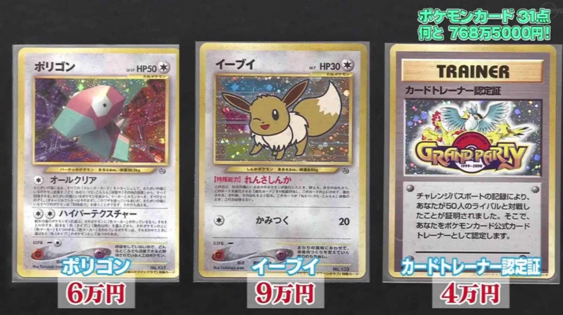 2019年04月12日精靈寶可夢(神奇寶貝)早在幾十年前就已經有忠實粉絲在瘋玩,他們收集到的動畫版卡片如今已經有很驚人的價值。52歲的高橋義治就很想知道家裡的珍稀寶可夢卡到底值多少錢,於是上了知名的「開運!なんでも鑑定團」找專家鑑定收藏品的價值。