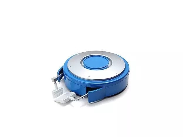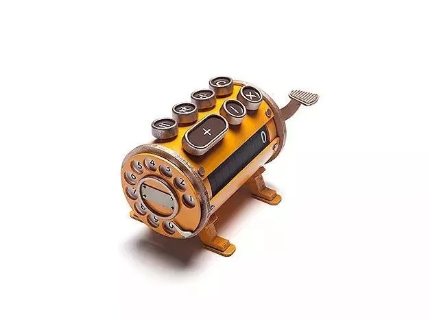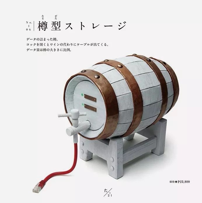 ▼木桶設計的行動電源,轉動水龍頭可以控制電線長短。