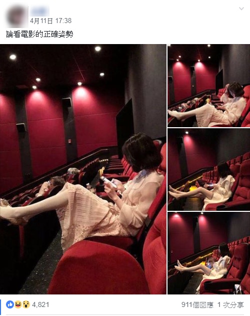「脫鞋跨椅背」看電影OK嗎? 正妹的行為引發網友吵翻天:正就可以了?