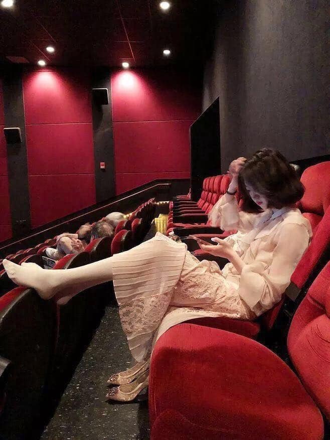 在公共場域當中,不作出各種誇張的行為是基本常識,不過近日網路上瘋傳幾張照片,內容都是兩位年輕女子脫掉鞋子,在電影院內將腳跨在前方的座位上玩手機,這樣的舉動讓網友評價兩極,有人抨擊她們的行為太誇張,也有人認為她們都是可以用頭髮把臉遮住,衣著和姿勢都不太自然,質疑是「網美」炒作的手段。
