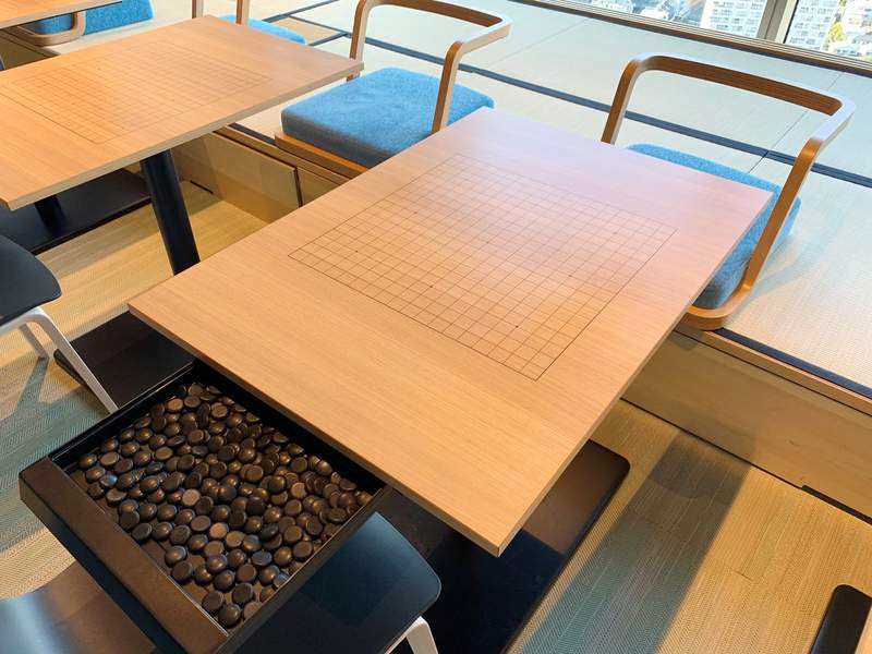 ▼桌子上有棋盤,和朋友一邊吃飯一邊下棋,比玩手機強多啦~