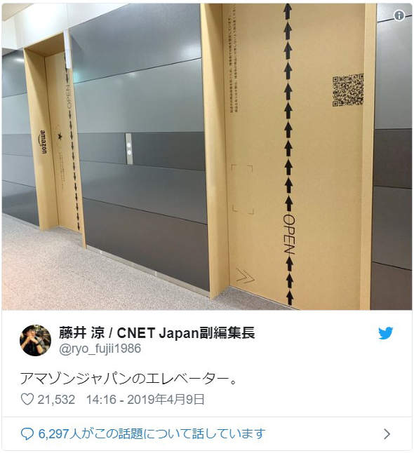 ▼首先是通往辦公室的電梯,竟然設計成了Amazon紙箱的模樣!