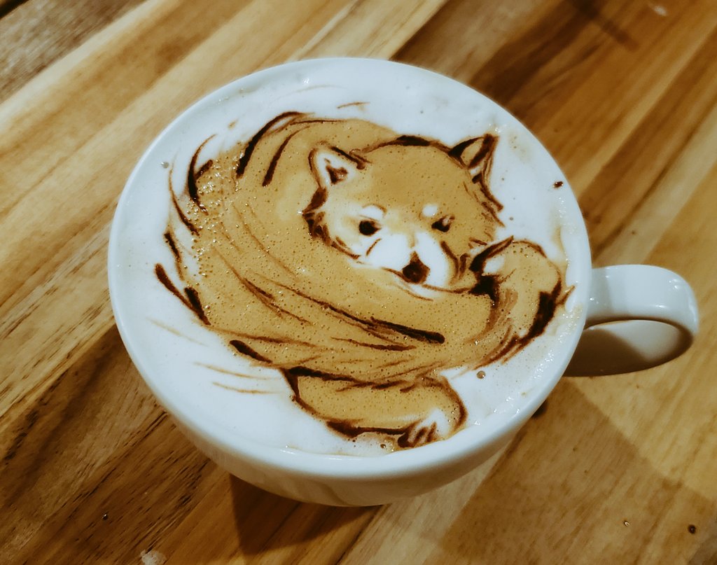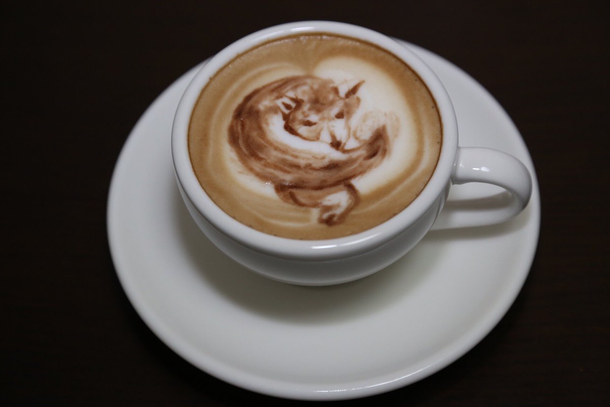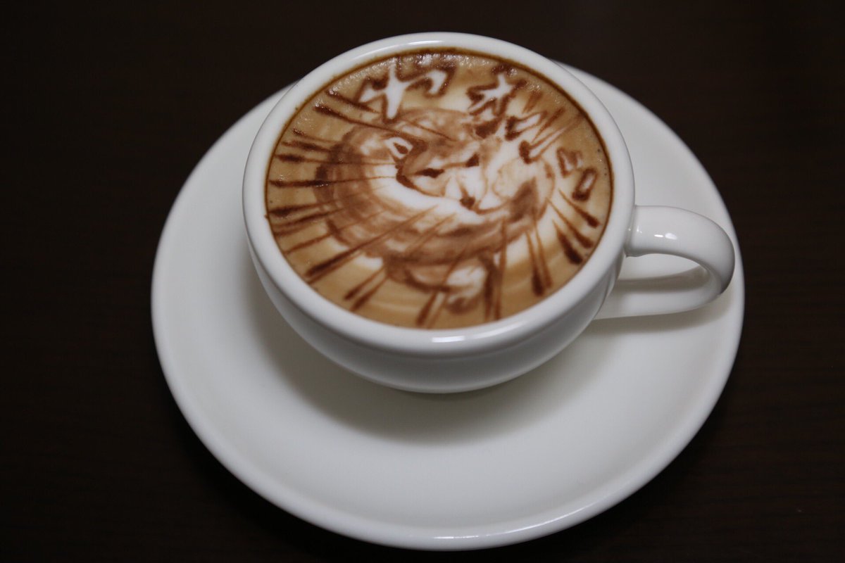 ▼「右勾拳柴犬」變成咖啡拉花,也是很棒的裝飾呢。喝下這杯咖啡,能夠得到無與倫比的力量嗎?