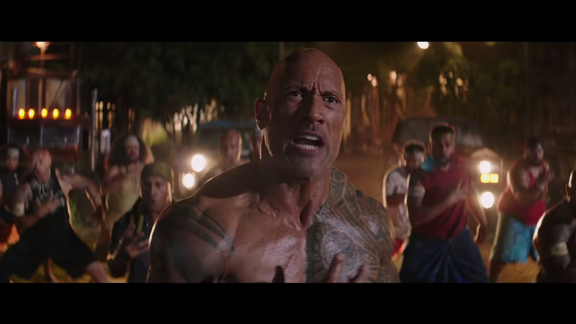 ▼在薩摩亞裡,因為沒有槍枝,他們只能拿起原始武器和敵人戰鬥,巨石強森也跳起了戰舞,後面更有手拉直升機的刺激鏡頭!劇情的反轉也讓影迷瞠乎其後!