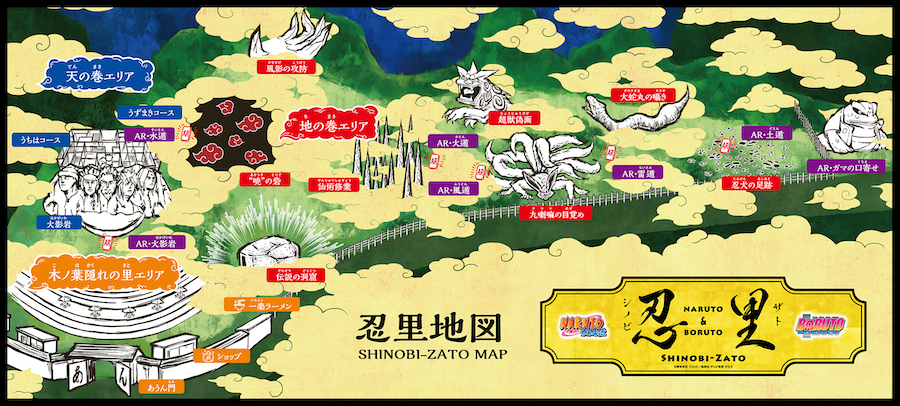 ▼既然是主題樂園,也少不了遊戲的成分囉!園區內分為靠智力闖關的「天之卷」,以及靠體力闖關的「地之卷」,必須突破與「曉」的戰鬥、「仙術修行」等各種試煉才能破關。此外,也能以全新AR技術體驗5種忍術(火遁、土遁、風遁、水遁、雷遁),更加融入火影的世界!