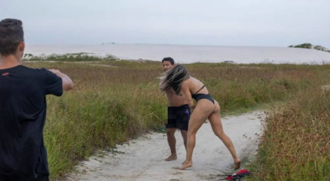 巴西27歲女子Joyce Vieira外表火辣,實際上卻是MMA(綜合格鬥)選手,擅長泰拳和巴西柔術,武力值超高。那天她與朋友到里約熱內盧州卡布弗裡烏的一處海灘拍攝泳裝寫真,沒想到竟遇到了一個不長眼的傢伙。