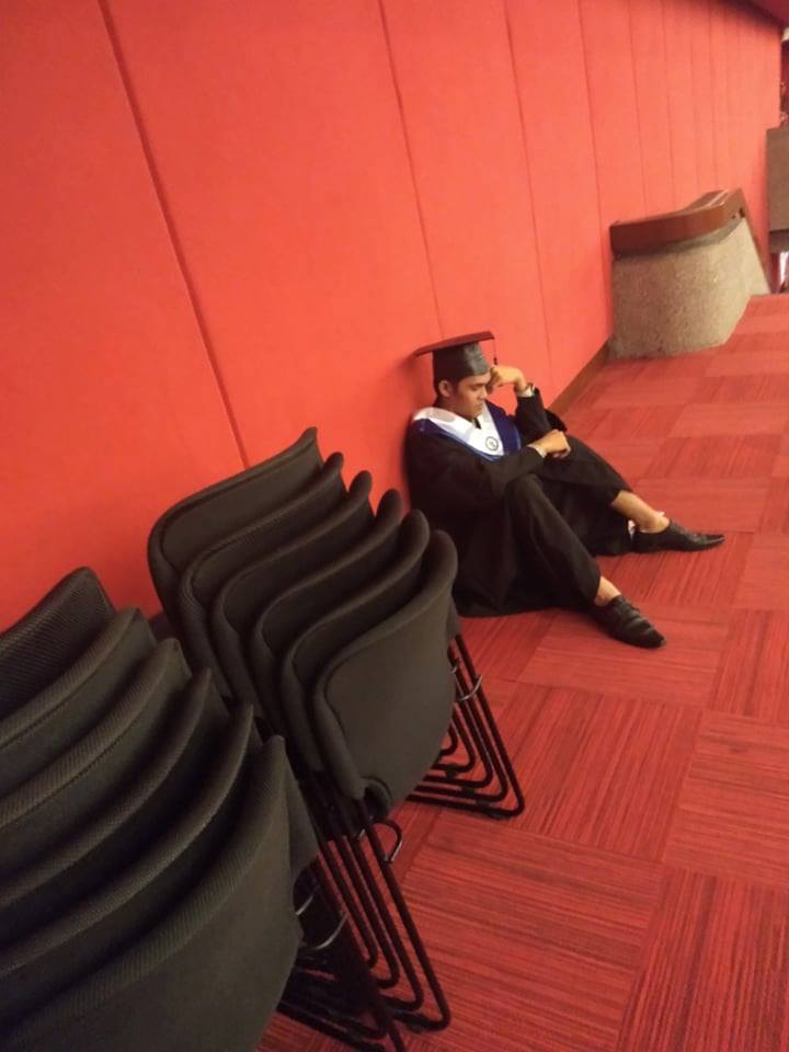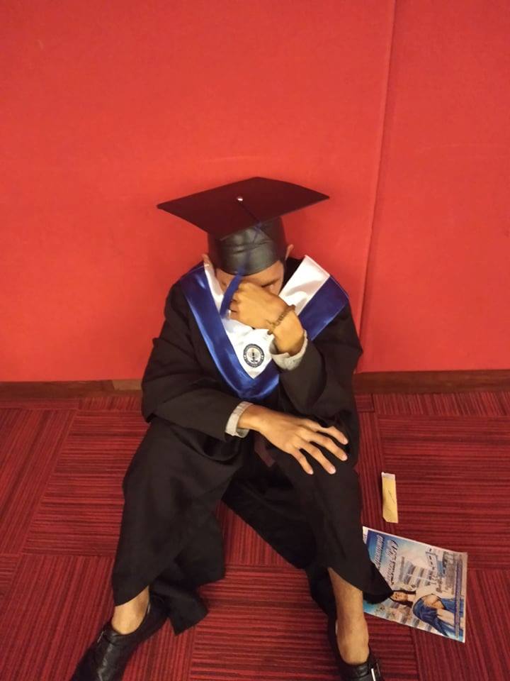 爸媽不肯來畢典...男大生「坐地爆哭」 系上教授幫站台:來,我們陪你