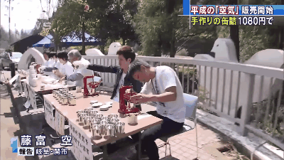 2019年04月25日日本政府在日前宣佈新年號「令和」,如今離告別「平成」、迎接新年好的日子(5/1)也只剩不到一週的時間。位於岐阜的一個村中,有人就抓住了這個改朝換代的商機,把「平成的空氣」裝進罐頭裡。