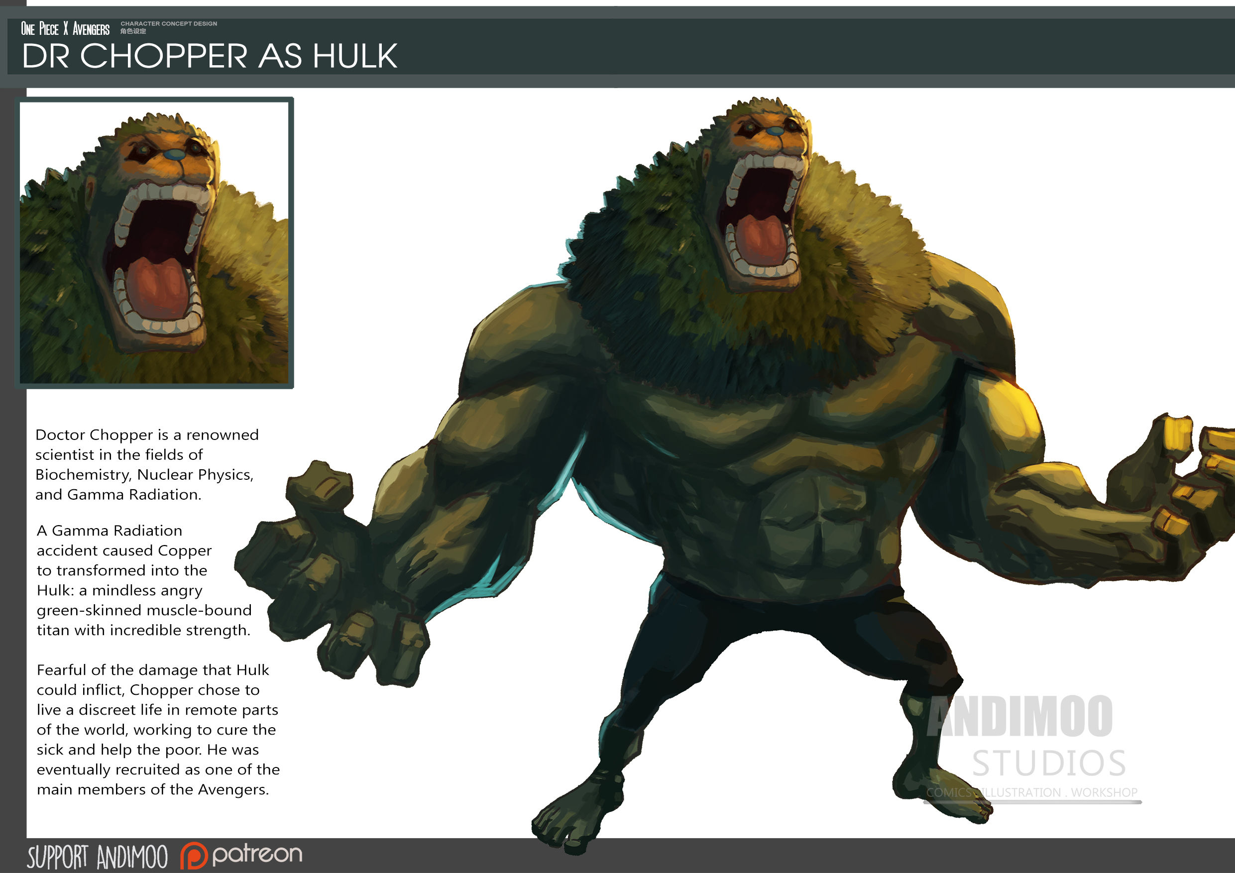 喬巴本來是一位在生化、核能物理、伽馬輻射等領域聲名遠播的科學家,經歷一場輻射洩露事件後,他變成了力量強大,但沒有心智,容易暴怒的「綠巨人」。為了不危機他人,他隱居在偏遠鄉村幫助窮人,發怒時變身是他的標誌。