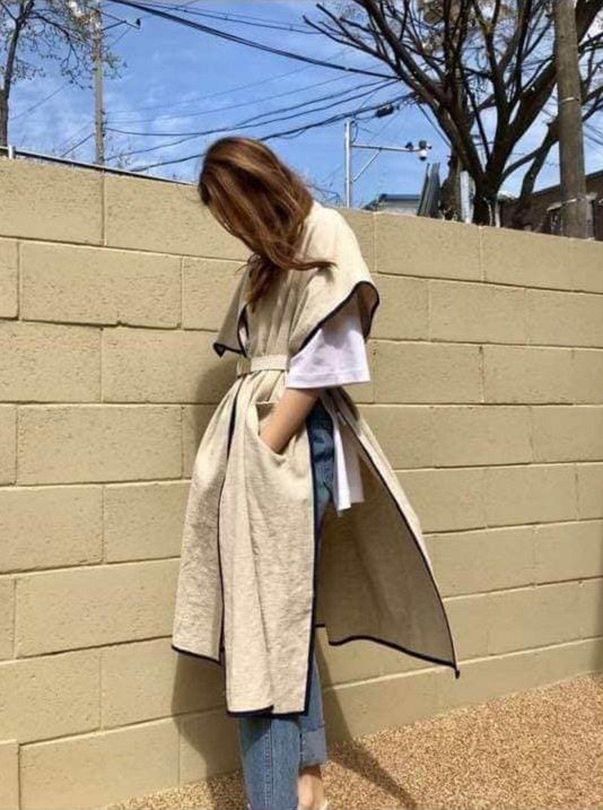 ▼網友po出的照片中,女子身穿一款短袖長款的素色罩衫,搭配九分牛仔褲和涼鞋。這另類的顏色和款式讓網友忍不住聯想到「孝服」。