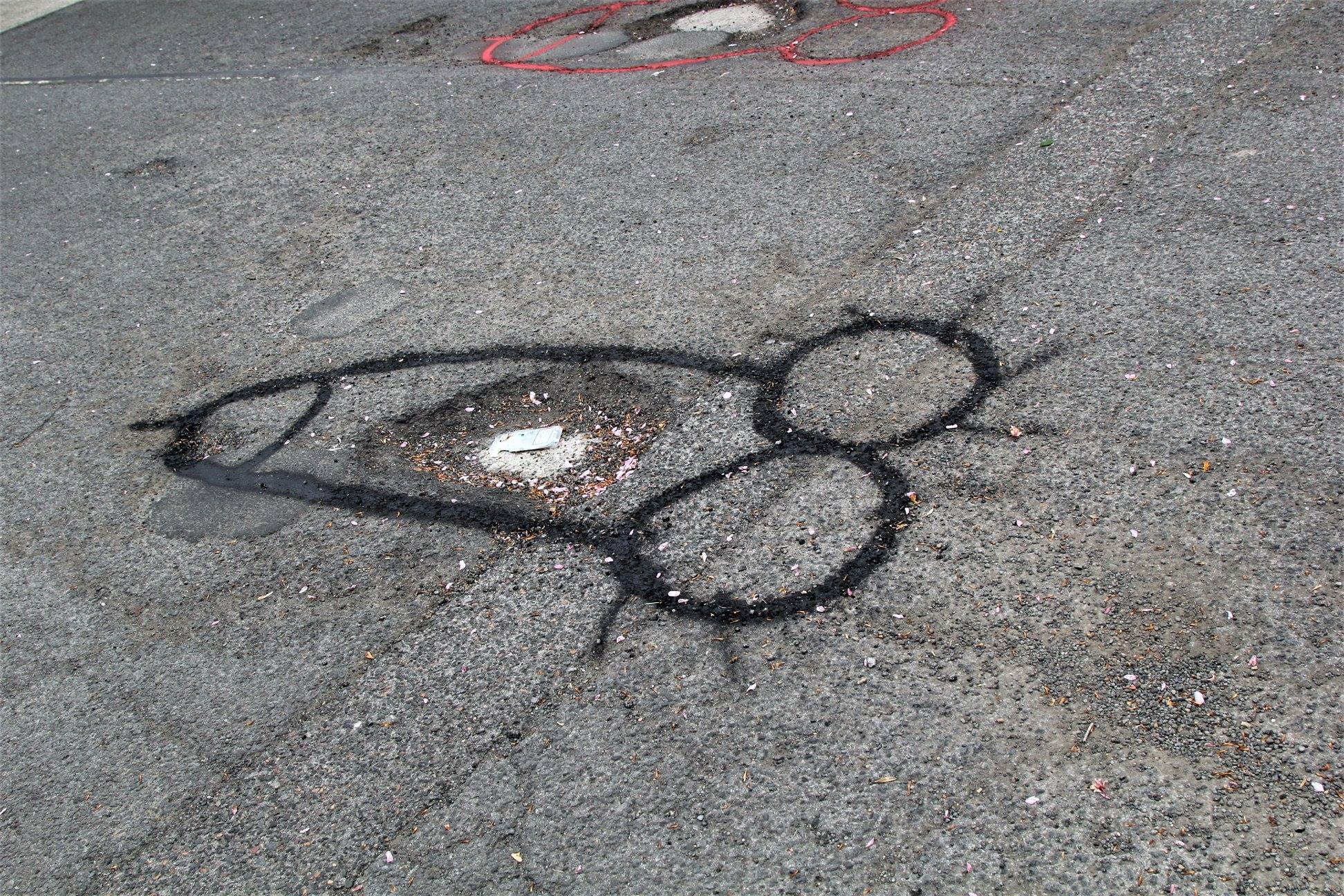 路爛一年沒修...匿名人「怒畫GG」舉報 沒幾天馬上填平了