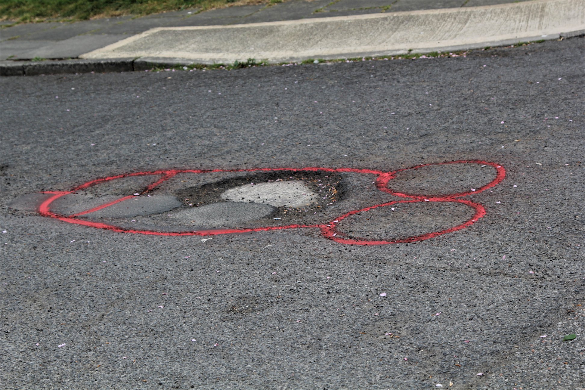 ▼英國米德斯堡(Middlesbrough)一位居民布萊德(Brad Nicholson)表示,他的居住區域路面有個坑窪,已經存在一年了,政府一直沒有來修。而不知道是什麼人,氣到在這個坑窪上畫了一根GG!