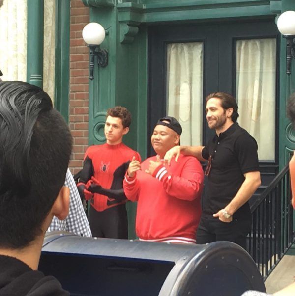 ▼遊客們與蜘蛛人合照時,「蜘蛛女」辛蒂亞(Zendaya)、「奈德」雅各布貝塔隆(Jacob Batalon),還有新加入的「神祕法師」傑克葛倫霍(Jake Gyllenhaal)突然現身,與遊客們一起合照。旁觀的人看到這一幕超激動,忍不住驚呼尖叫。