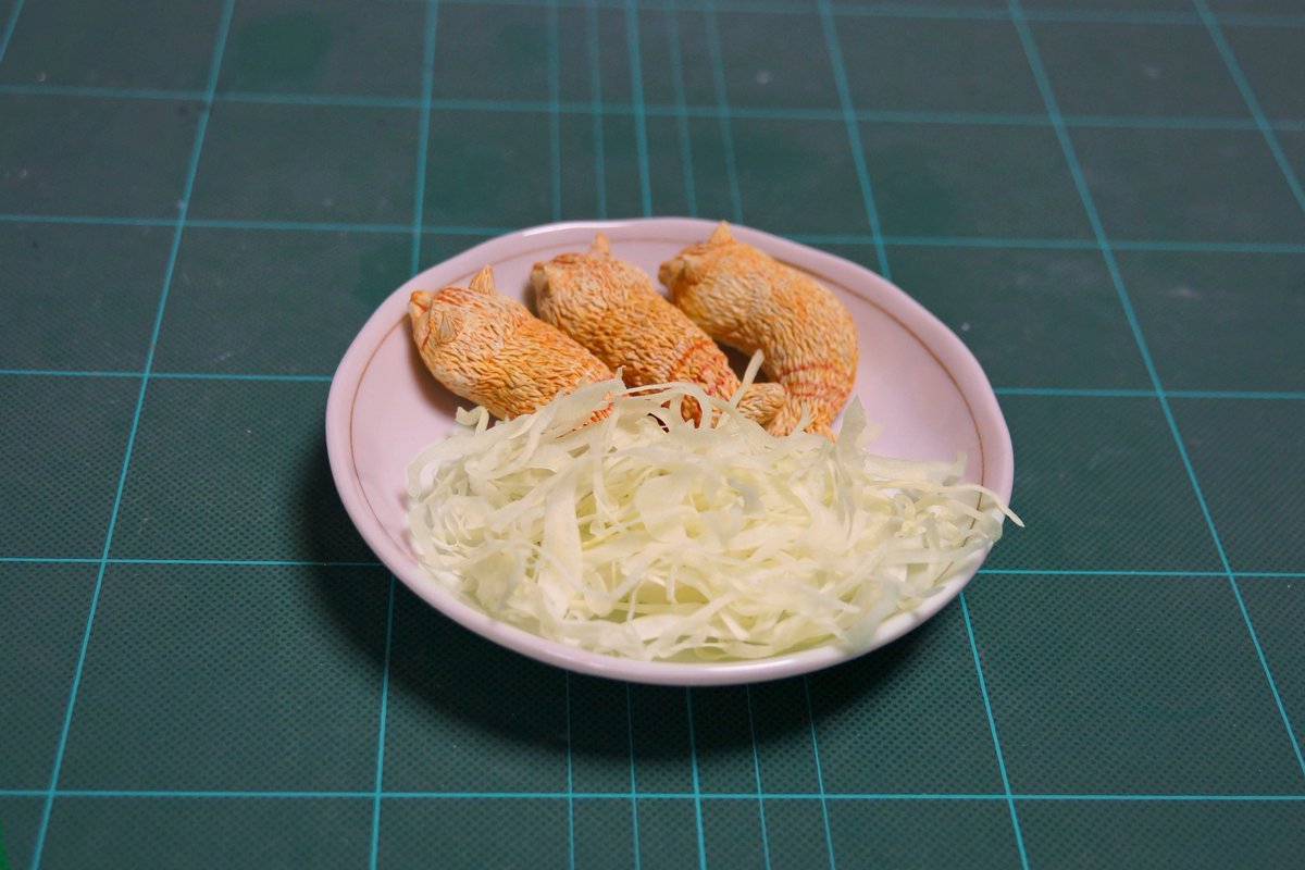 ▼推特上時常製作模型的神人「めーちっさい」也看到了這隻可愛的貓貓,馬上就做出炸蝦貓了!