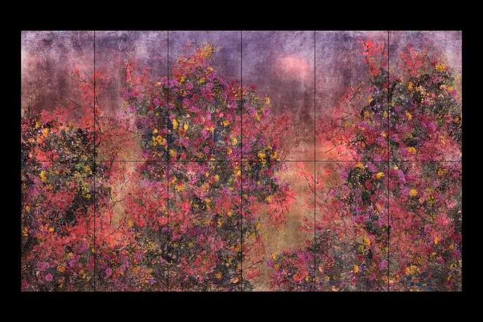 ▼而作品當中最受到矚目的,就是這個《生死無止盡,此刻即永恆 II》了,這也是它首次在全球範圍展出。作品有趣之處就是其畫面並不是預設的,而是透過12個大熒幕展現出鮮花、野草隨著時間、季節的變化,形成了不同種類的花海,從誕生、盛開到枯萎不斷循環。有觀眾表示,眼前這一瞬間的畫面都是轉瞬即逝的,錯過的話就再也無法看到第二次。