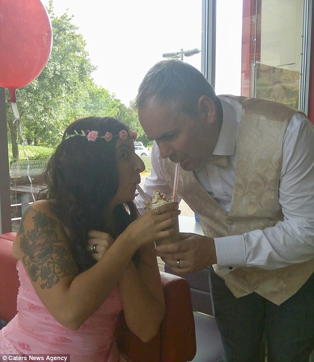 ▼當他們決定結婚時,為了將更多的錢省下來度蜜月,於是他們都同意將婚禮舉辦在這家位於西密德蘭郡(West Midlands)的肯德基內。