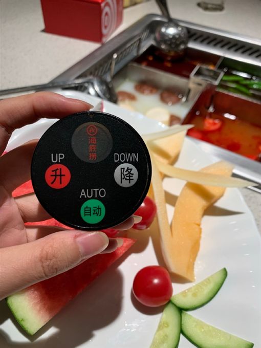 ▼微博網友「hitomiss星」貼文分享了她在海底撈西安萬眾國際店吃鍋時使用的「遙控升降鍋」,只要按下這個開關,鍋底就會上升,燙熟了的肉片、青菜等馬上就呈現在眼前。而且減少了筷子在火鍋湯中攪來攪去的衛生問題,也避免了將湯汁噴濺在衣服上。