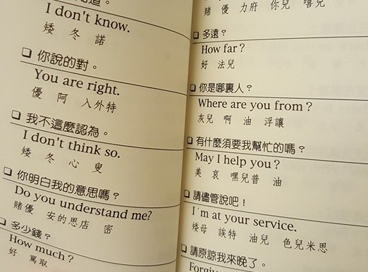 2019年05月14日你還記得自己剛剛接觸英語時是怎麼記住發音的嗎?很多人會偷偷把英文中文化,逼自己記住。之前有網友在臉書社團「爆廢公社」po出過一本叫《中文拼音說英語》的書,把「I don't know」讀作「矮東諾」、「How far」讀作「好法兒」,看起來很搞笑。