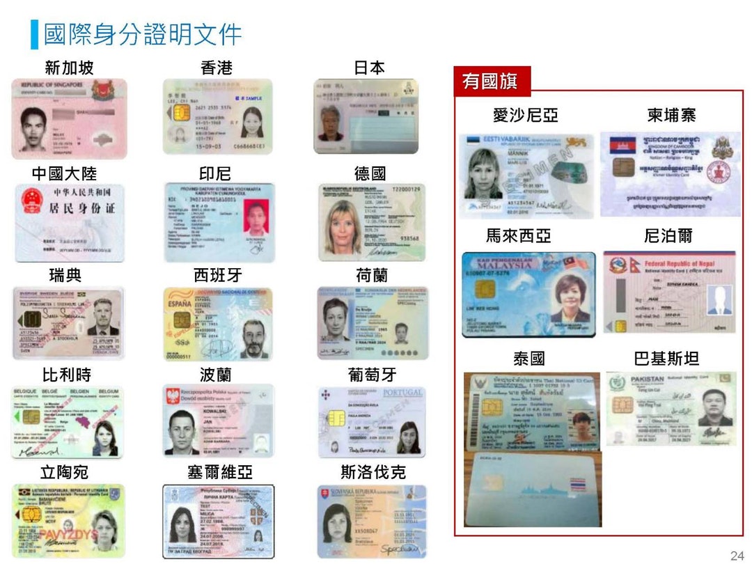 ▼內政部也列出了許多國家的身份證樣本,讓民眾了解各國身份證其實未必會有國旗圖案,不應與政治有太多的聯想。