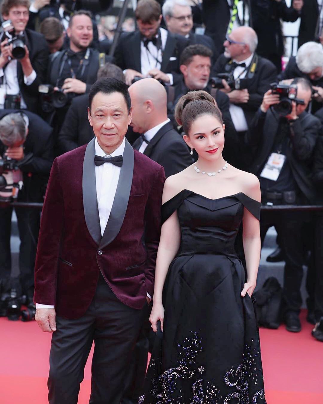 ▼昆凌和資深演員王學圻一起步上紅毯,她身穿一襲黑色禮服,露出白皙香肩和事業線,亮眼紅唇搭配項鍊點綴,優雅高貴。