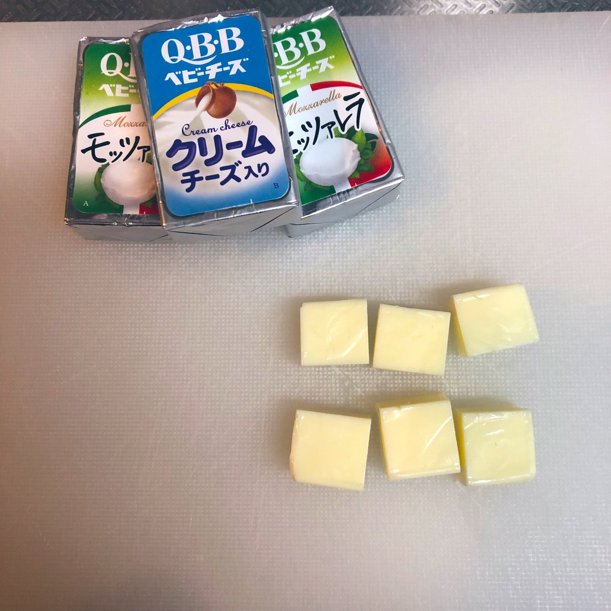 ▼這位網友表示,他研發出了「啤酒的好麻吉」,先買來起司(選擇自己喜歡的口味與種類即可),切成容易入口的大小。