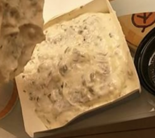 ▼打開一看竟然滿滿的都是塔塔醬,連魚排什麼的都完全看不到!這一看就讓她覺得自己是被店員故意整,怒斥「它整個賣相真的是,很像很像廚餘的樣子,這個是因為不高興我打電話客訴嗎?所以廚房人員給了我這樣的餐點」。