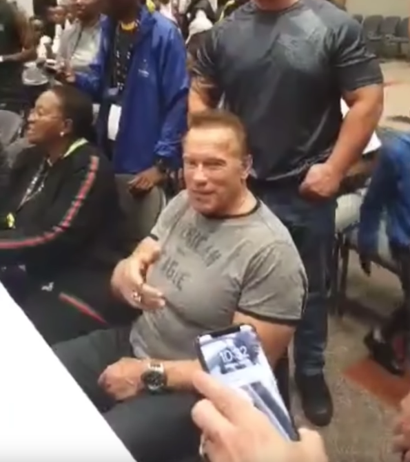 ▼71歲的阿諾在南非約翰尼斯堡出席「阿諾非洲經典賽」(Arnold Classic Africa)推廣健美,現場有很多粉絲求合照。