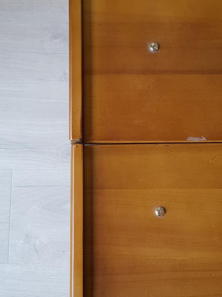 ▼原PO表示實木床架安裝好後,看一眼就覺得歪到不正常,發現床架歪斜不齊,表面還有擦撞痕跡。茶几的抽屜也歪斜,於是馬上就急問網路賣家怎麼回事。