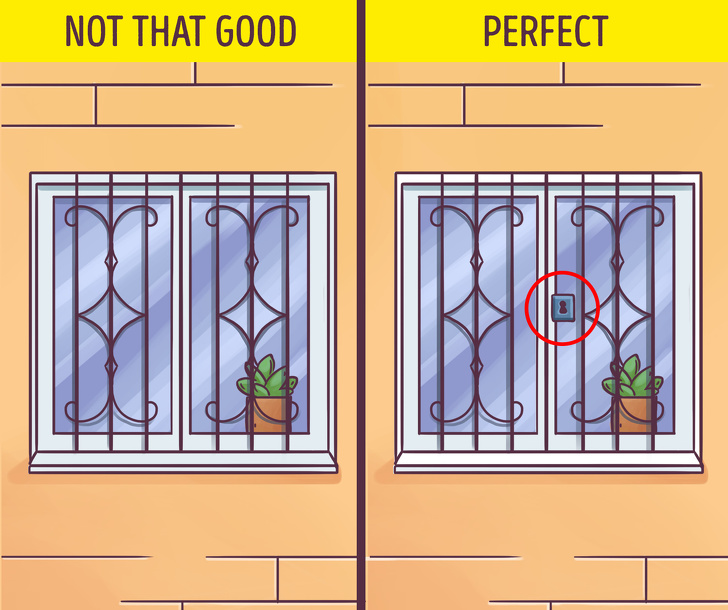 竊賊除了大門之外,另一個常用的路徑就是窗戶。如果你住在一、二樓的話,可以在窗戶上安裝防盜鎖或鐵窗。不過為了安全著想,建議選擇可以解鎖的鐵窗。