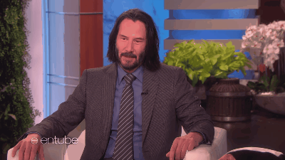 ▼在電影裡扮演霸氣十足的基努李維(Keanu Reeves),在「艾倫秀」的節目談話中,竟然露出靦腆笑容!