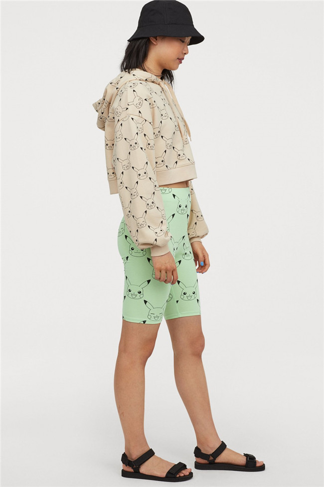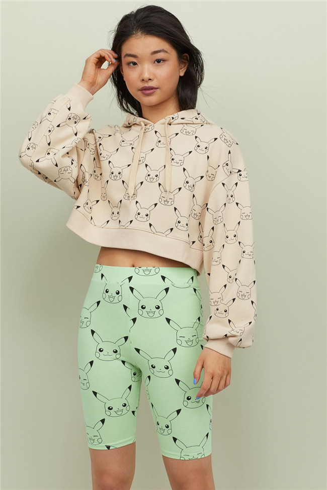 ▼除了這些正常的基本款外,還有部分款式讓網友們挖苦「醜到爆」,最誇張的就是這款女裝緊身褲,上面滿是皮卡丘的笑臉,除了顏色是超難駕馭的蘋果綠和蜜桃粉,重點是超緊身設計和卡在大腿中間位置的長度,讓下半身的線條一覽無遺,網友們戲稱「半截頭棉毛褲」、「這什麼驚為天人的審美啊,皮卡丘看了都哭」。