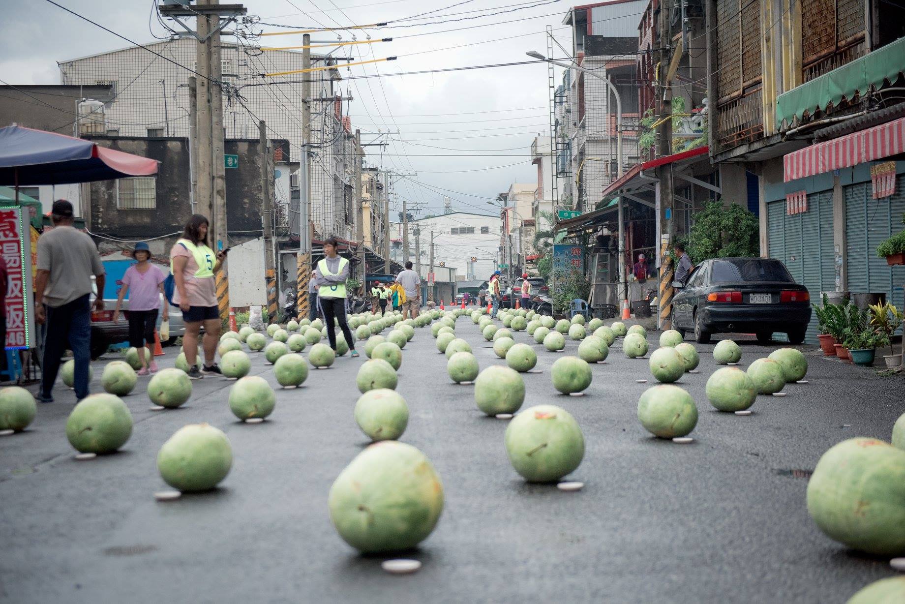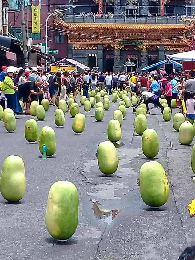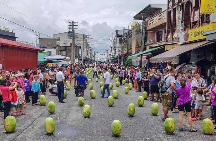 ▼而去年為了結合端午習俗與當地農業特色,佳冬青年志工團在6月7日廣惠宮前,在中午12點時封街「立西瓜」,「別人端節正午立蛋,我們來立西瓜!」藉此凝聚居民社區團結、創造話題,同時也表達對在地瓜農的最高敬意!