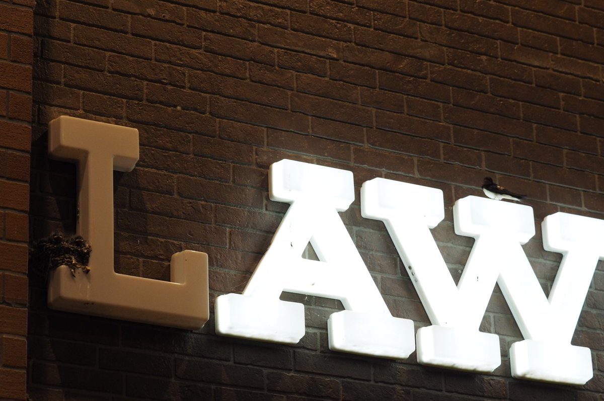 ▼再靠近看得更仔細一點,發現L字跟旁邊的W字上好像都有居民在。原來是燕子一家在L字上築巢,還生了一窩小寶寶,店長擔心開著燈會過熱、可能導致小寶寶們危險,才把燈關掉。
