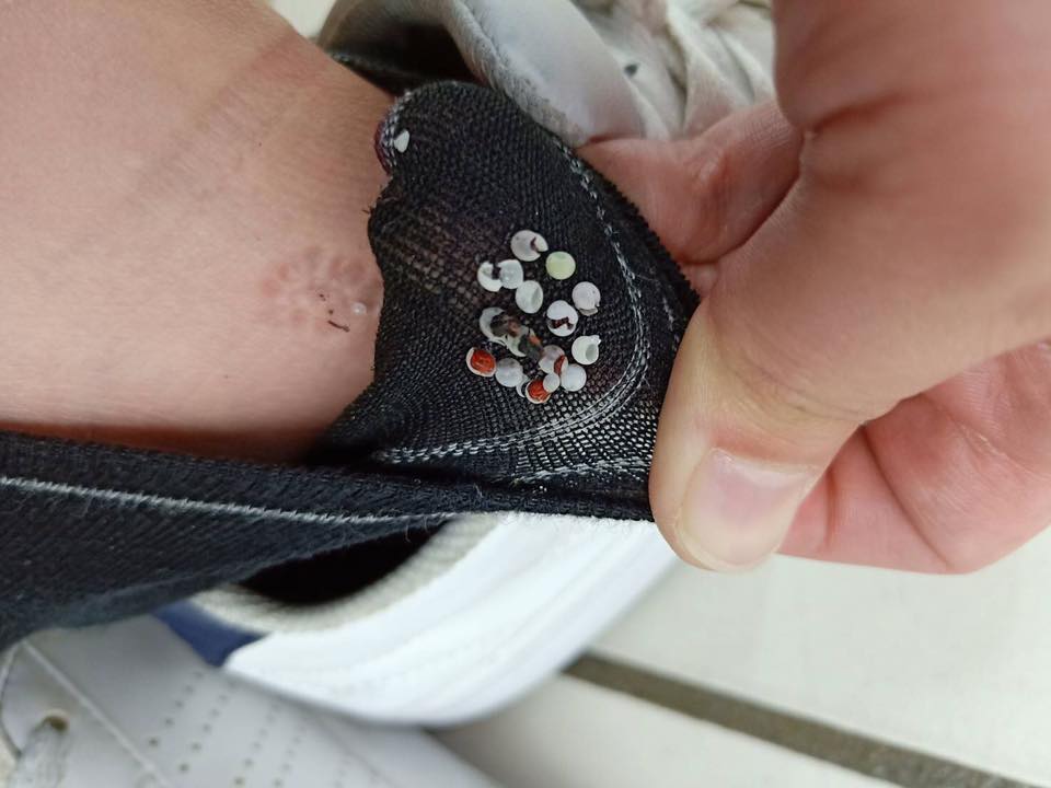 ▼許多網友看完之後驚呼:「感覺好像有毒液了,建議去檢查一下」、「還以為是襪子內裡的亮片」、「穿到孵化了,我的天」、「X,超噁」、「怎麼會穿了4小時才發現」!